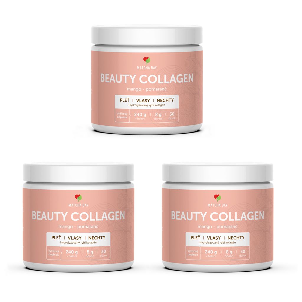 Beauty kolagén obsahuje hydrolyzovaný rybí kolagén v silnej dennej dávke až 6300 mg, ktorý je doplnený o kyselinu hyalurónovú, extrakt z hroznových jadier, vitamíny a minerály dôležité pre krásu pokožky, vlasov a nechtov. Náš kolagén je obohatený o vitamín C, ktorý prispieva k tvorbe kolagénu v tele a podporuje jeho lepšiu vstrebateľnosť a využiteľnosť. Formula je zároveň bez pridaného cukru a má príjemnú ovocnú príchuť mango – pomaranč.