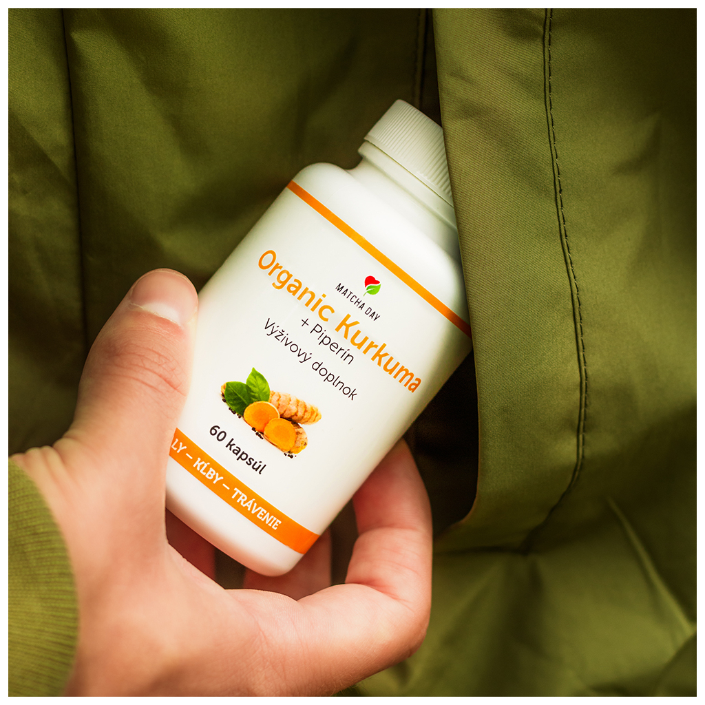 Na výrobu našich kurkuma tabliet používame certifikovanú organickú kurkumu v BIO kvalite. Naše kapsule navyše obohacujeme o extrakt z čierneho korenia, ktorý zvyšuje vstrebateľnosť kurkumínu až o 2000%.