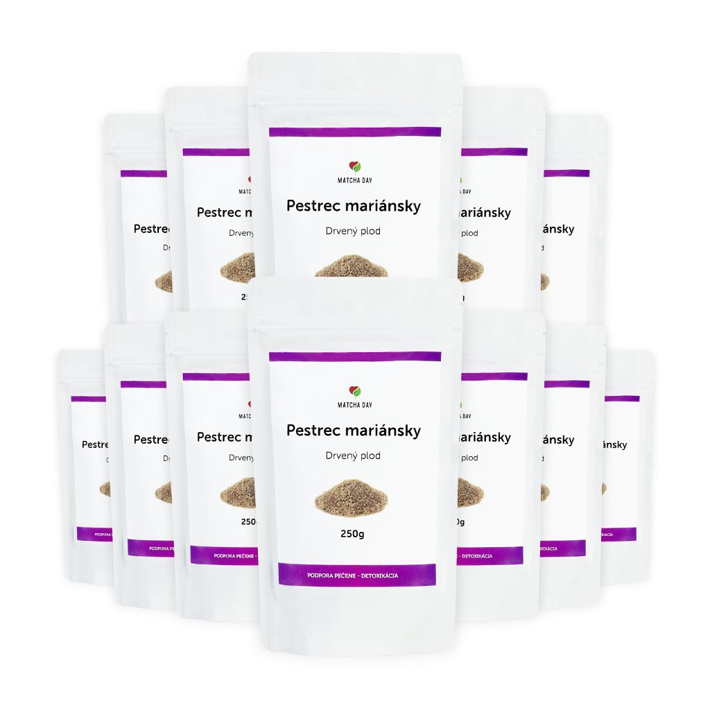 Obsah balenia: 100% plod pestrecu mariánskeho (Silybum marianum) drvený 12 x 250g.